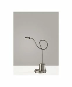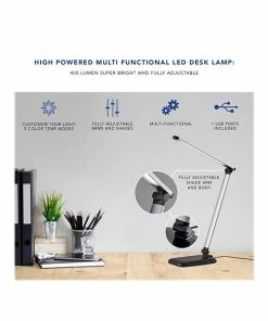 The gracefully vented metal cone shades are painted black with white interiors for maximum light reflection. The lamp’s two satin steel poles extend in a V-shape from the matte black base. Walnut wood accents on each shade softens the contemporary look to fit a variety of decor. The 3-way rotary socket switch will only work with a 3-way light bulb, otherwise this lamp will function with simple on/off switch at its highest setting. This lamp is smart outlet compatible.