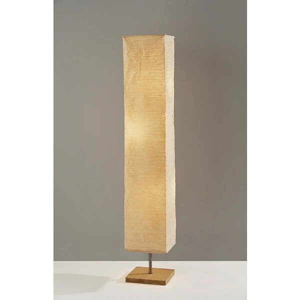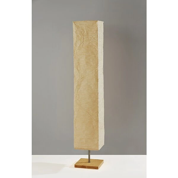 The Adesso® Dune Floorchiere adds an accent of nature as well as illumination to any room. The natural wood base with satin steel accents contrasts with the texture of the collapsible natural crinkle paper shade. The shade diffuses the light from the three stacked bulbs inside.
