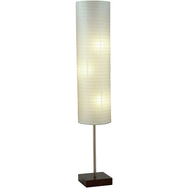 The versatile Adesso® Gyoza 3-Light Floorchiere contributes modern style and drama as well as plenty of ambient light for a living room or den. The collapsible white rice paper shade adds a natural element to the décor while gently diffusing the illumination. The square walnut finished wood base adds to the natural look while providing stability. A convenient foot step switch turns the lamp on and off.