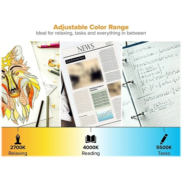 - Three adjustable color temperature modes for relaxing, reading, and tasks