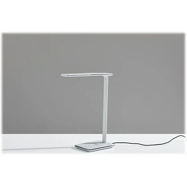 Take your home office to the next level with the Simplee Adesso Declan AdessoCharge LED wireless charging multifunction desk lamp. With 800 lumens of customizable, flicker-free, high-powered light, this lamp will suit all your needs at any time of the day. A sleek touch switch on the base adjusts the light between three different color temperature modes and five different brightness settings. Whether you need a warm, dim night light for reading before bed or bright white light to wake you up while you work during the day, this lamp has you covered. A sophisticated glossy white finish will add a modern touch to your home or office. In addition, a Qi certified wireless charging pad is conveniently located inside the base. Many smartphones have Qi technology built in, so just place your phone on the pad, and it will charge right up. No cords, no mess. It’s that easy. This product is Qi certified by the Wireless Power Consortium. The lamp has been tested and verified to be safe and in compliance with the Qi standard. The AdessoCharge pad supports 5W charging on contact with the charging pad, which gets your phone from 0% to 100% in just 3-4 hours, depending on your phone model. A USB is located on the base and can charge a second device simultaneously.