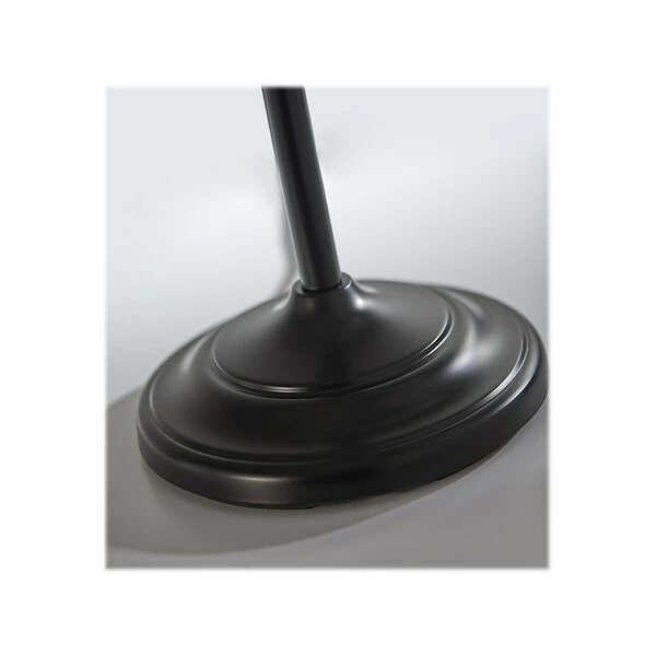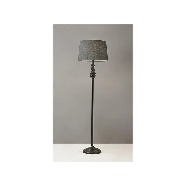 This beautiful lamp will make the perfect addition to your home. The Simplee Adesso Charles floor lamp features a classic black turned metal pole and base topped with an elegant herringbone tapered drum shade. A small footprint allows this piece to fit into various spaces whether it is next to your favorite reading chair, sofa, or your home office.