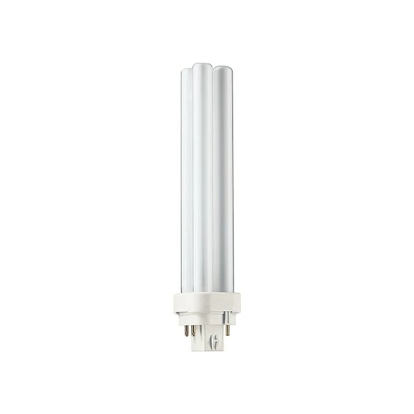 Illuminate an area for an average of 12,000 hours with this compact fluorescent PL-C lamp. The quad-tube design emits 1800 lumens of white dimmable light and a color temperature of 3500K. The Philips 26-watt compact fluorescent PL-C lamp has a G24q-3 base type to fit with various outlets.