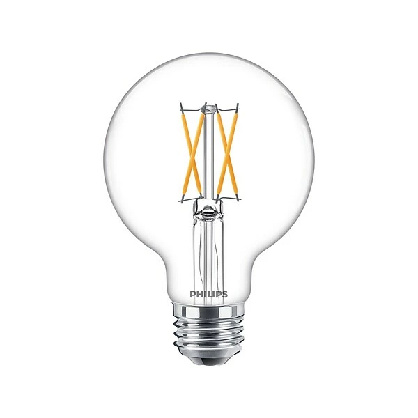 The Philips G25 LED lamp offers energy-saving ambiance with an elegant effect. The unique design provides light in all directions, giving lighting designers a long-life alternative to standard incandescent sources.
