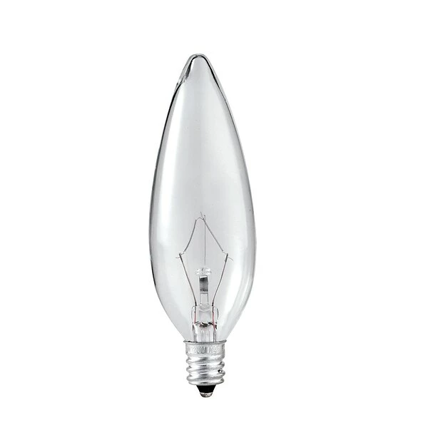 Philips Lighting DuraMax Decorative blunt tip 25-Watt B10 1/2 E12 candelabra screw incandescent lamp offers 150 Lumens of bright light output. It radiates white light to the surrounding. Lamp in clear color, has voltage rating of 120 Volts. This 4-1/16-Inch comes with average life of 2200 hours. It features aluminum cap and is ideal for decorative application.