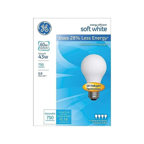 Stay productive by lighting up your workstation with these bright energy-efficient bulbs. The medium E26 screw base is compatible with most table lamps, floor lamps, enclosed ceiling fixtures, and bare lamp sockets, while 620 lumens of brightness keep the room illuminated without creating glare. These GE energy-efficient light bulbs are available in a pack of four, ideal for use in multiple fixtures.