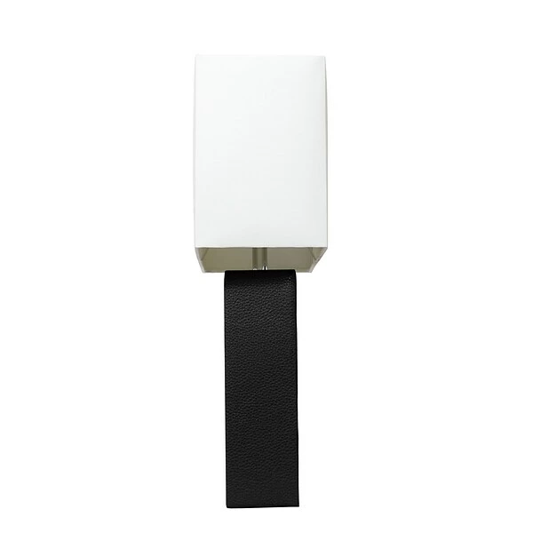 This fashionable table lamp, with its leather body and white fabric shade, will add style and pizzazz to any room. We believe that lighting is like jewelry for your home. Our products will help to enhance your room with elegance and sophistication.