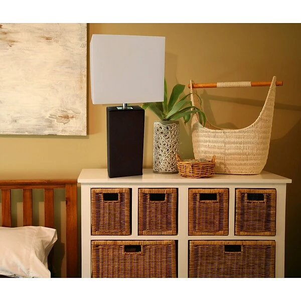 Elegant Designs Modern Leather Table Lamp with White Fabric Shade