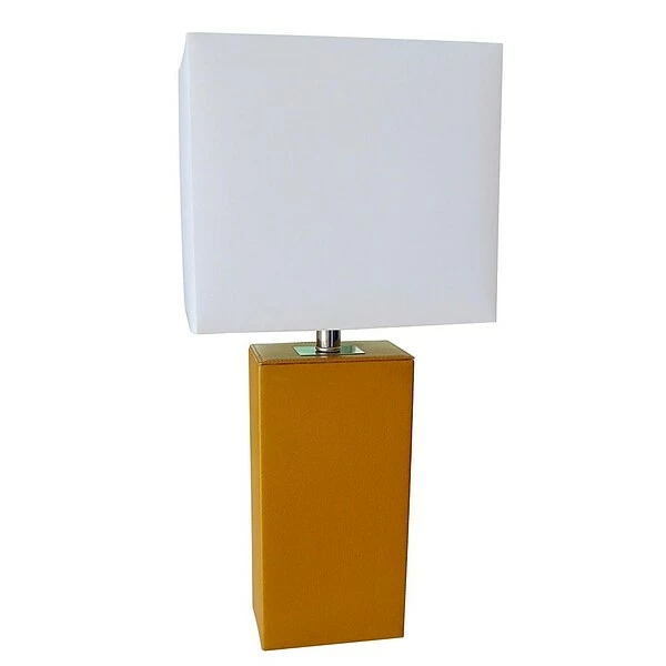 Elegant Designs Modern Leather Table Lamp with White Fabric Shade